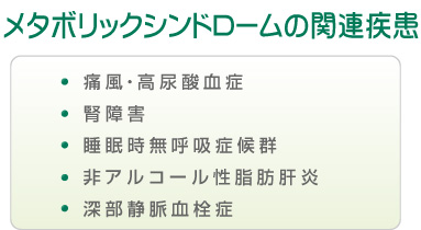 内臓脂肪の蓄積と良い相関を示し、手軽に測定できるウエスト周囲径が診断に使われ、男性では85p以上、女性では90cm以上が目安となります。